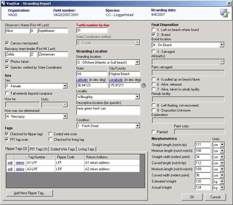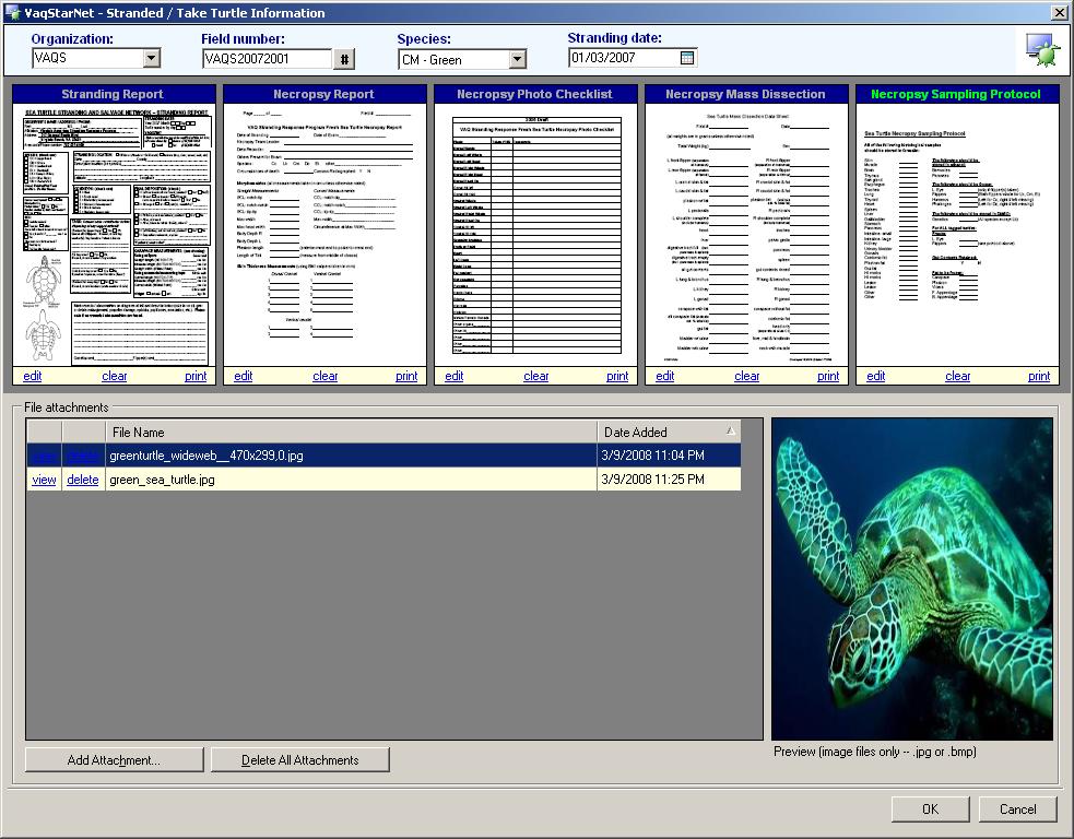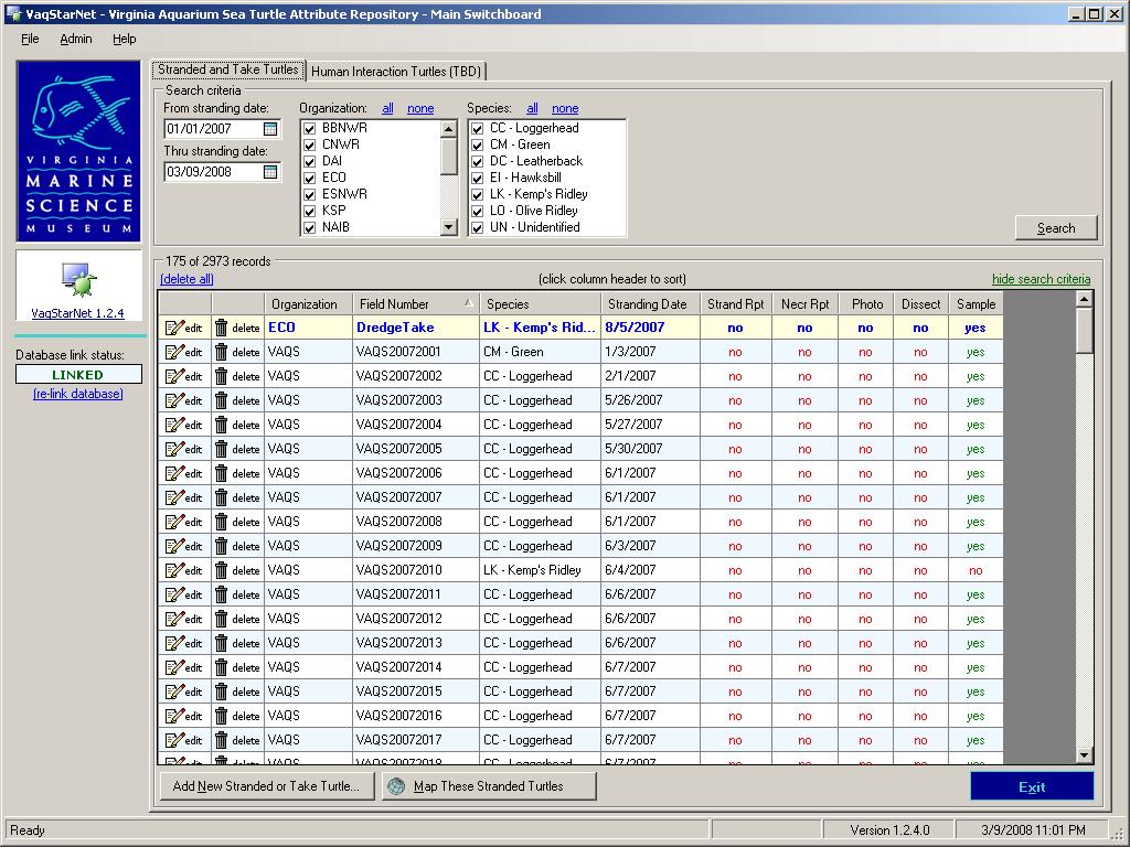 VAQSTAR (Virginia Aquarium Sea Turtle Attribute Repository) collects sea turtle stranding and necropsy data for the Virginia Aquarium and Marine Science Center.